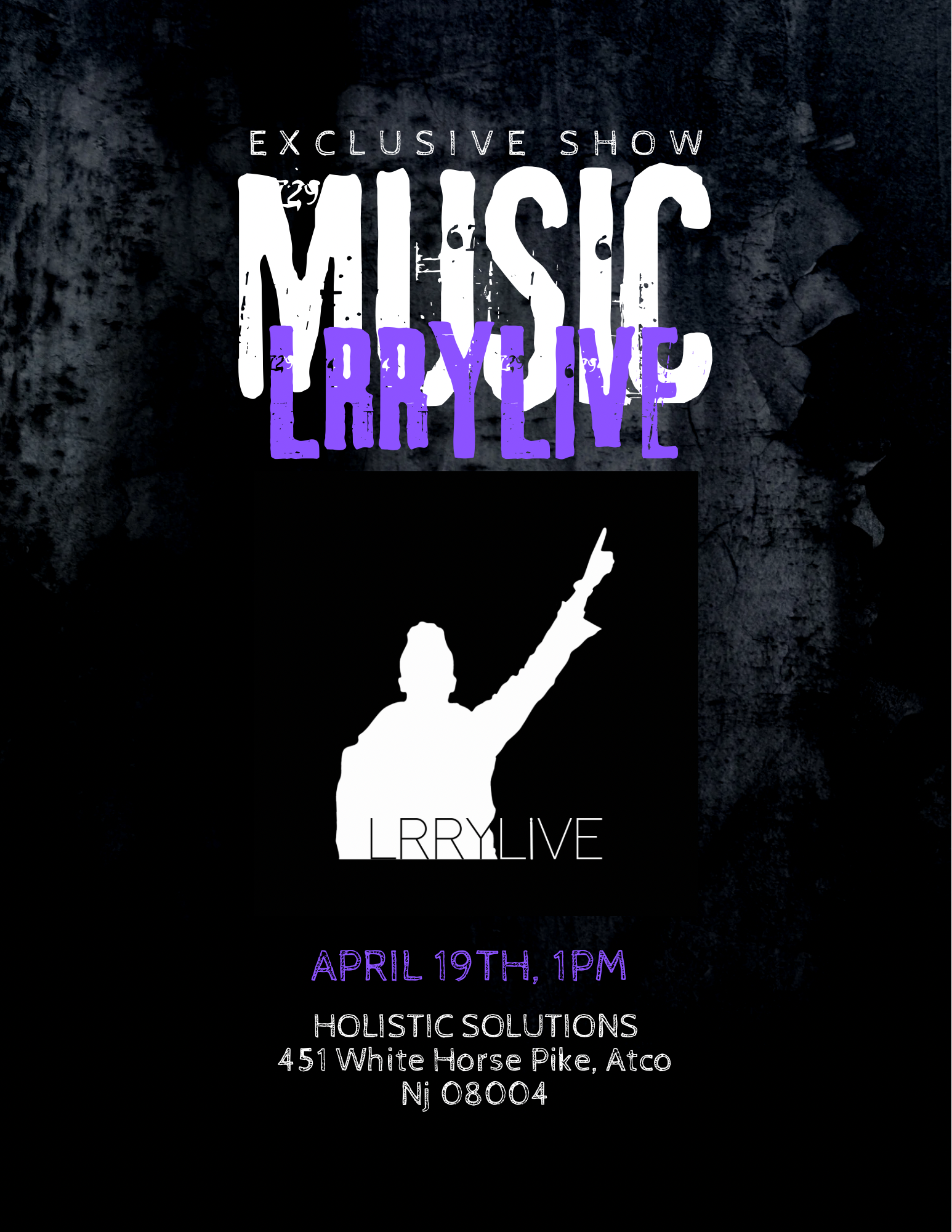 This performance will be at holistic solutions dispensary! LRRYLIVE will be performing all the hit songs that you love! LRRYLIVE will also be performing A new single called “self celebration” from HIS new UPCOMING ALBUM “LLazarus chapter 1” see you soon! xo